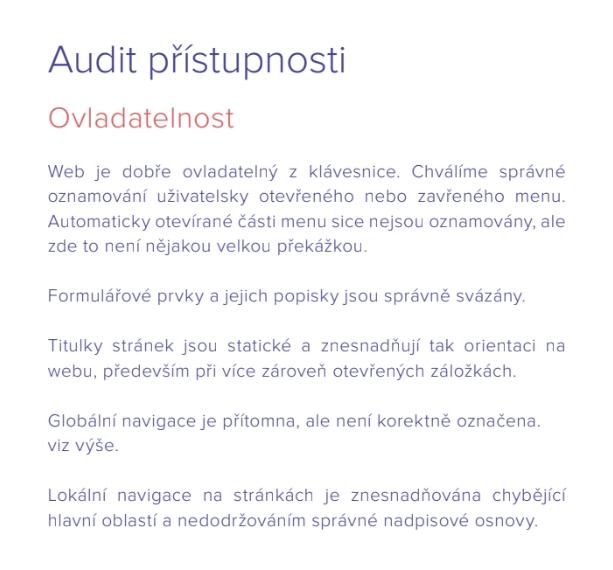 • Analýza přístupnosti: dle metodiky Web Content Accessibility Guidelines 2.1.