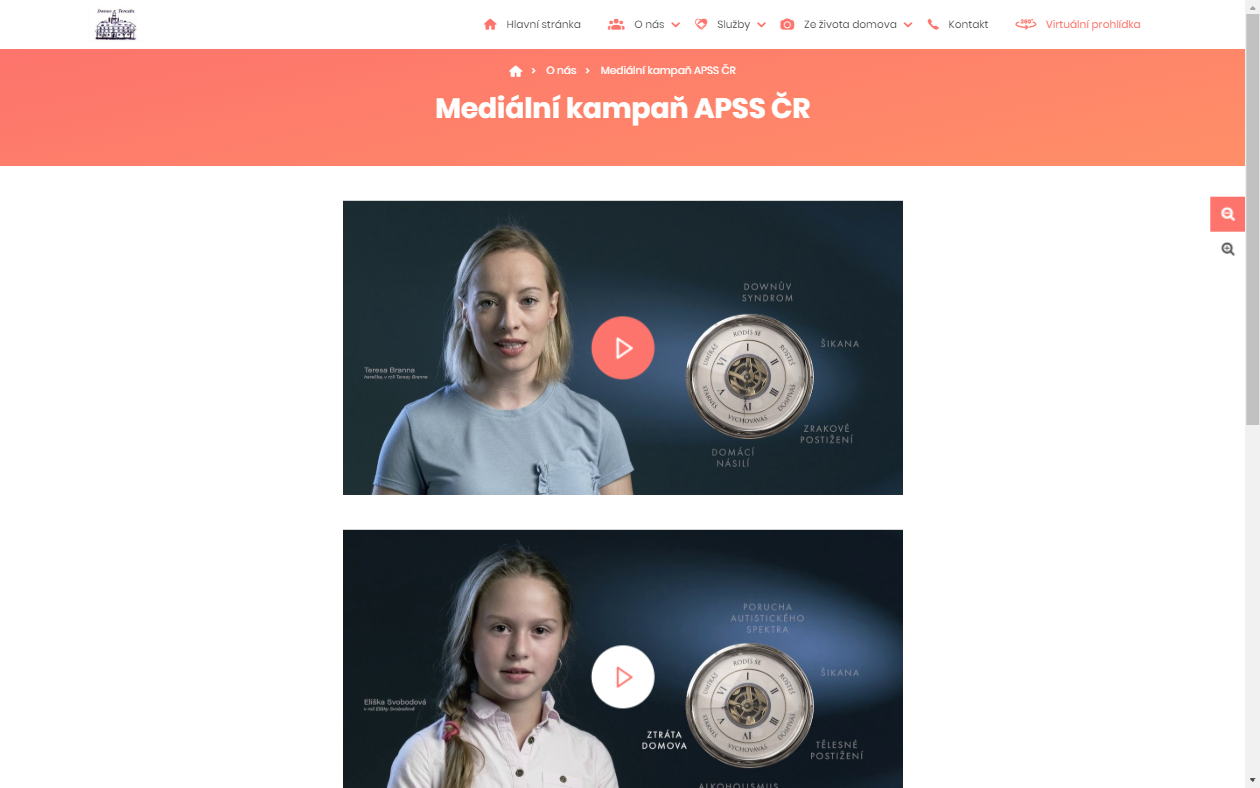 Video je dobrý způsob, jak návštěvníkům webu přiblížit fungování vašeho domova. Můžete potenciální zájemce virtuálně provést po prostorách zařízení, natočit rozhovor se spokojenými klienty, udělat reportáž z probíhajícího jarmarku…